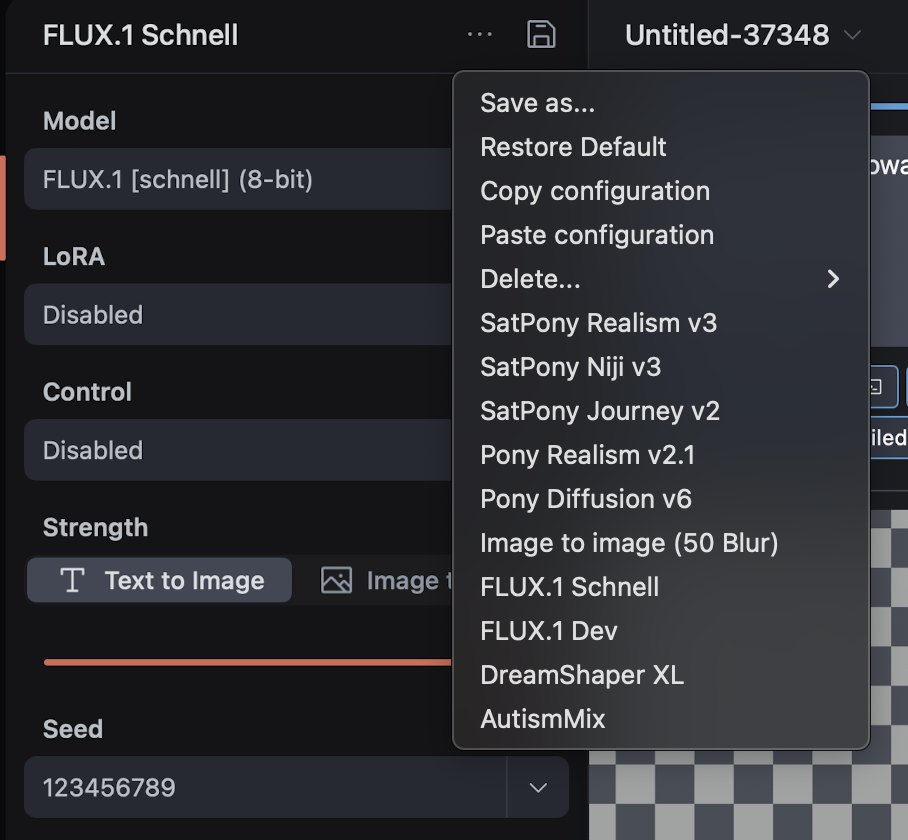 This feature is inspired by the implementation in the DrawThings app for Mac, which already provides a similar capability. Incorporating these dropdown menus would greatly enhance the user experience by making it easier to manage and switch between different models and their respective configurations.